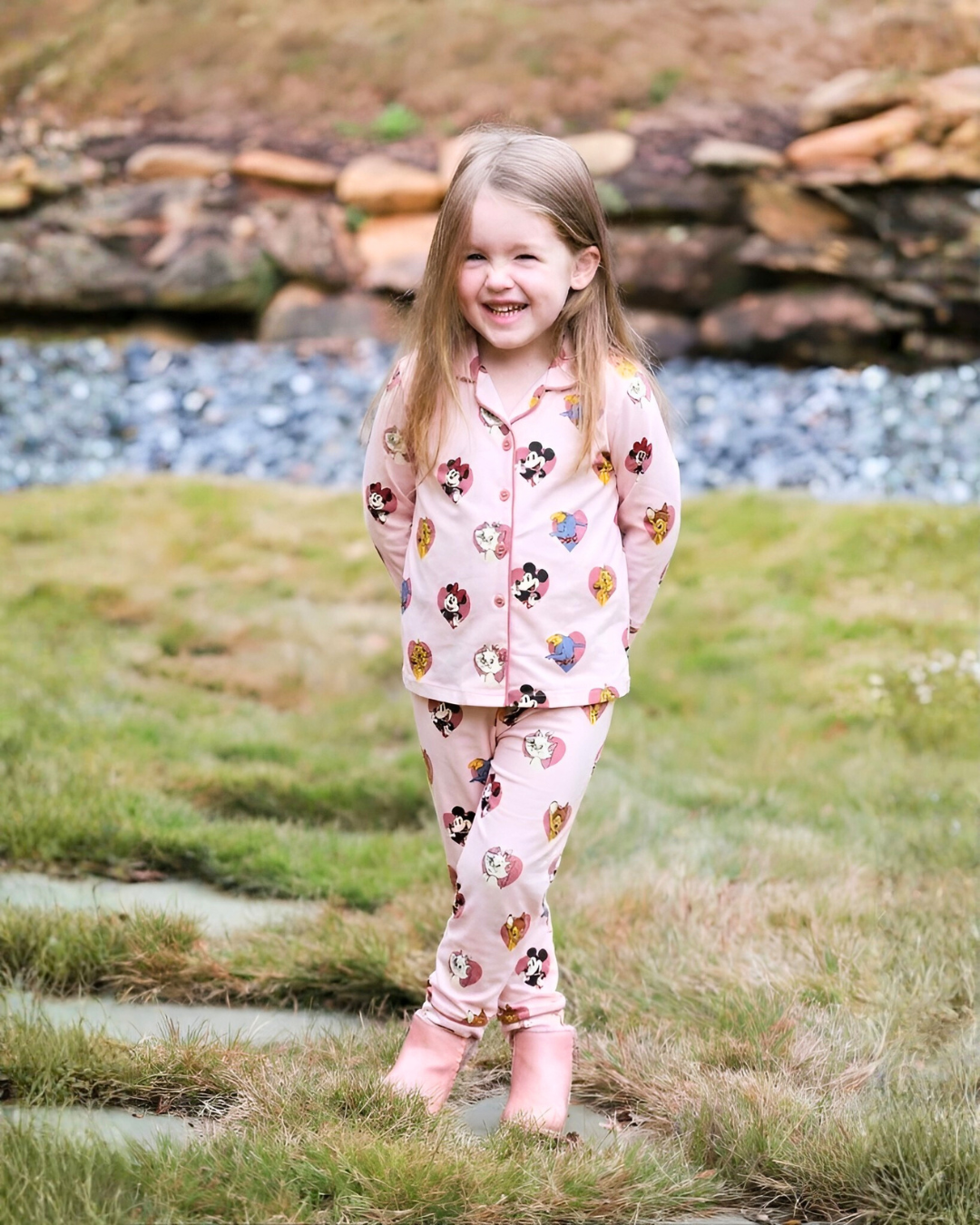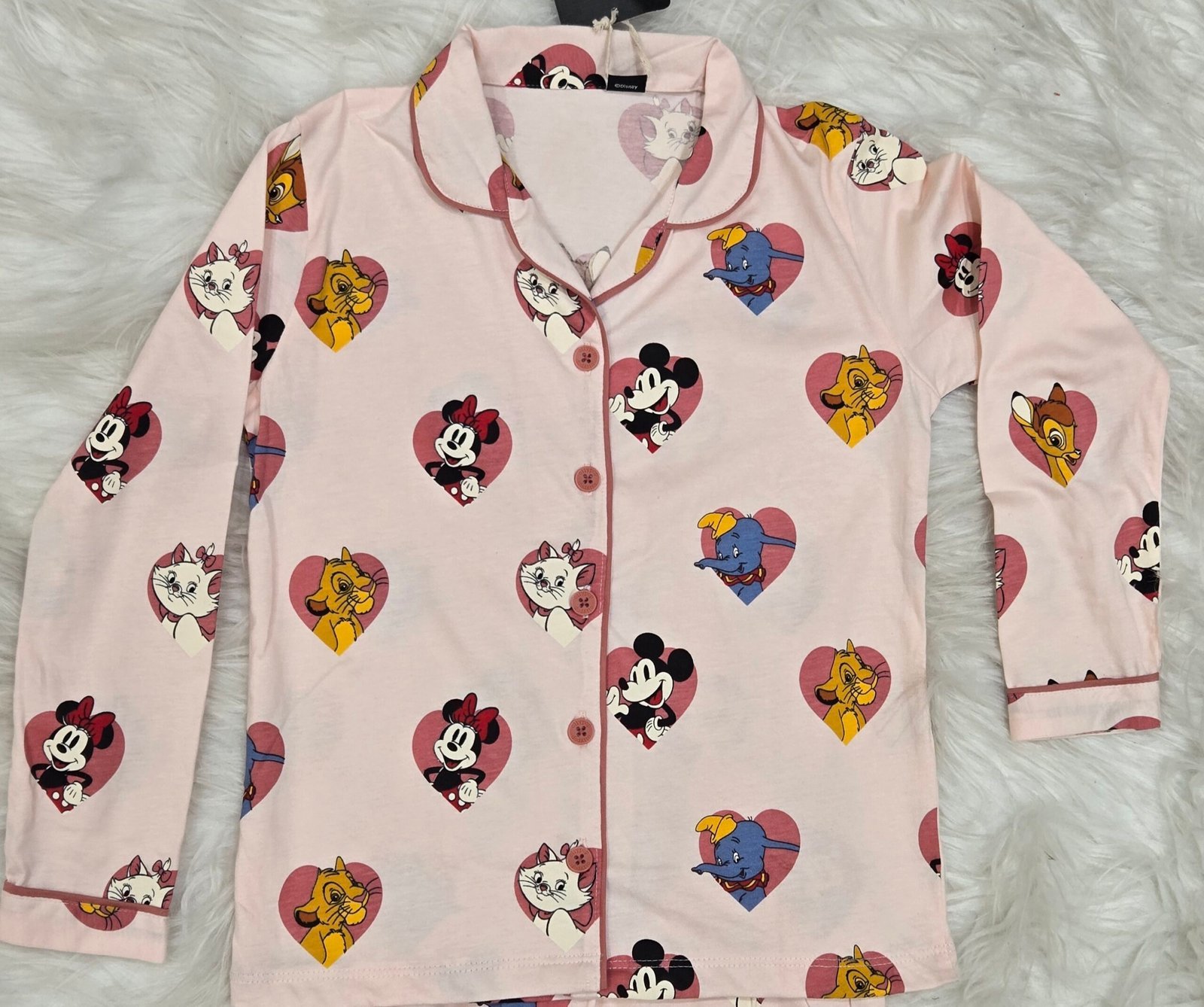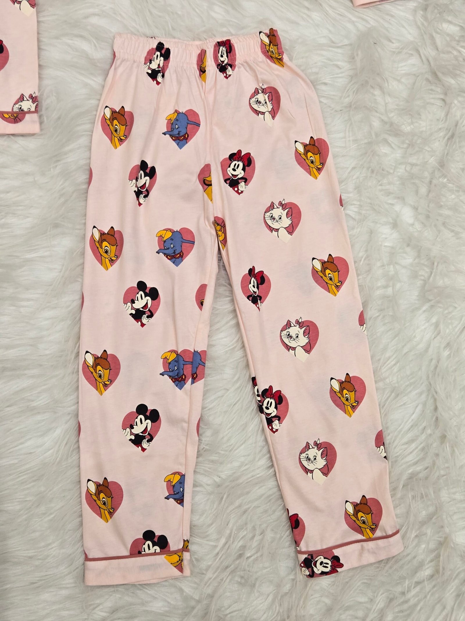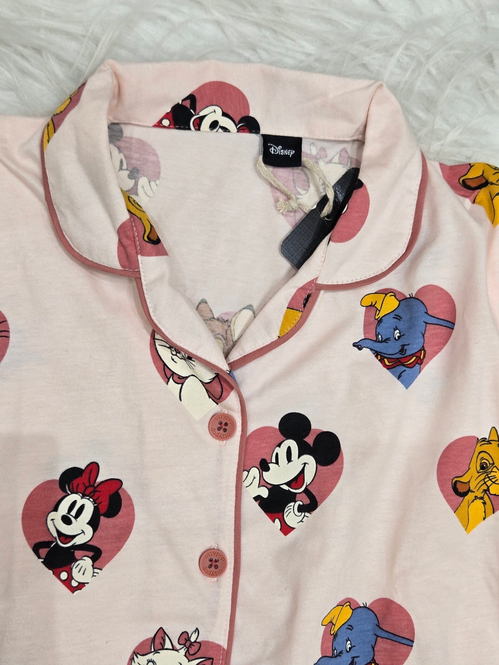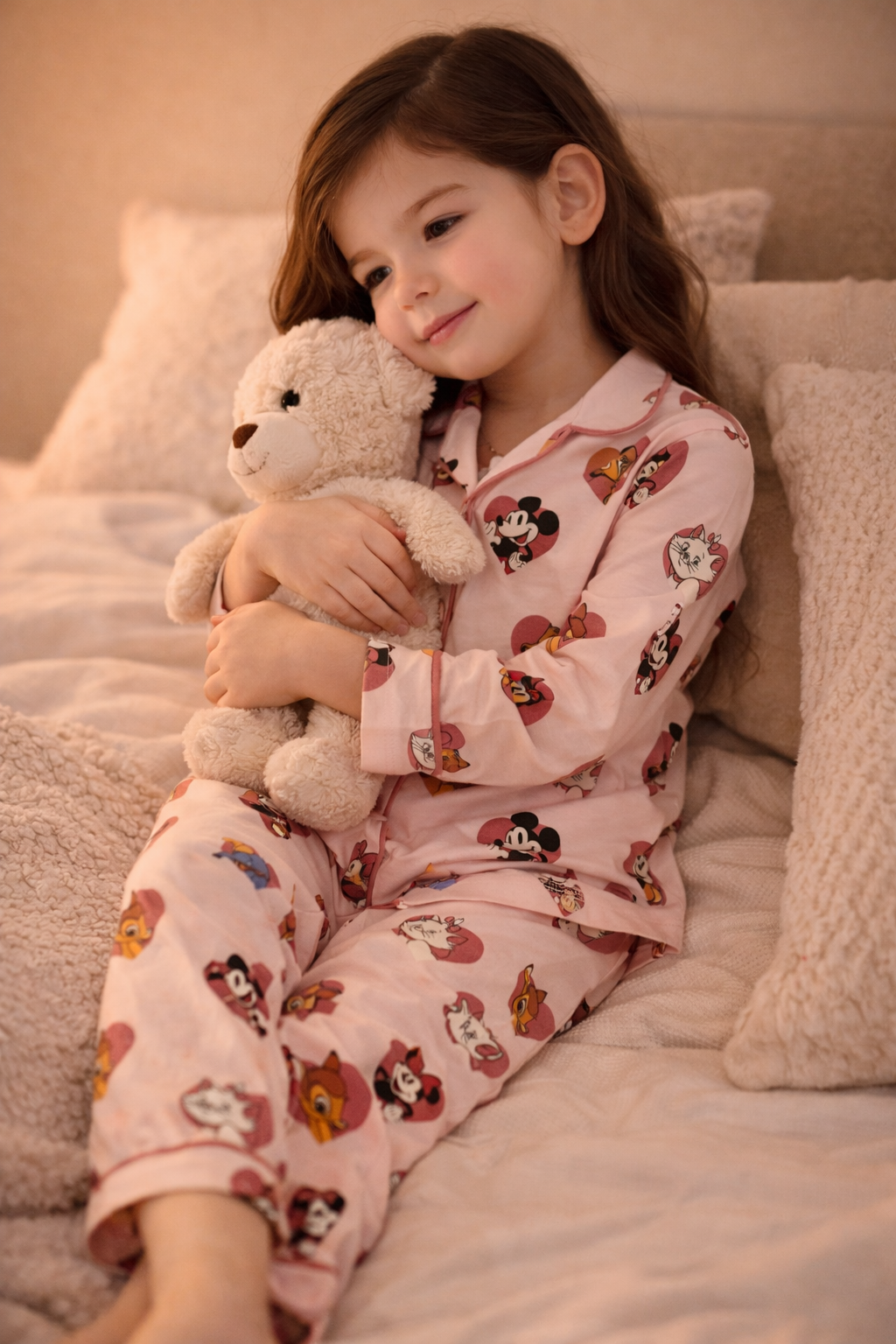 Let bedtime feel like a little celebration with this adorable Minnie-themed night suit. Designed in a soft blush pink palette with playful character prints inside heart shapes, this set brings comfort, cuteness, and bedtime excitement together.